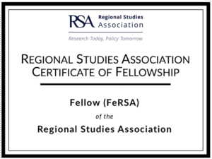 The Regional Studies Association is pleased to announce the appointment of the new RSA Fellows (FeRSA) for 2025. RSA Fellows are individual members who have been dedicated members of the Regional Studies Association and are recognised for their innovation or service in the field of regional studies, their scholarly achievement, and contributions to the life of the Association, including roles on the RSA Board, committees, or as ambassadors, as well as speaking at events.