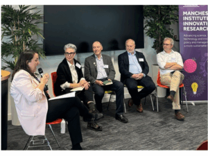 Richard Jones (University of Manchester) delivered the opening keynote on inclusive innovation and the future of the North, examining productivity challenges, regional R&D distribution, and Greater Manchester’s strategic response through innovation districts (SISTER/ID Manchester), manufacturing innovation parks (Atom Valley), and engagement with FE colleges as anchor institutions.