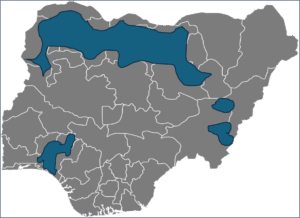 Note: Map of Nigeria showing regions of historical cousin marriage tradition preference in blue.