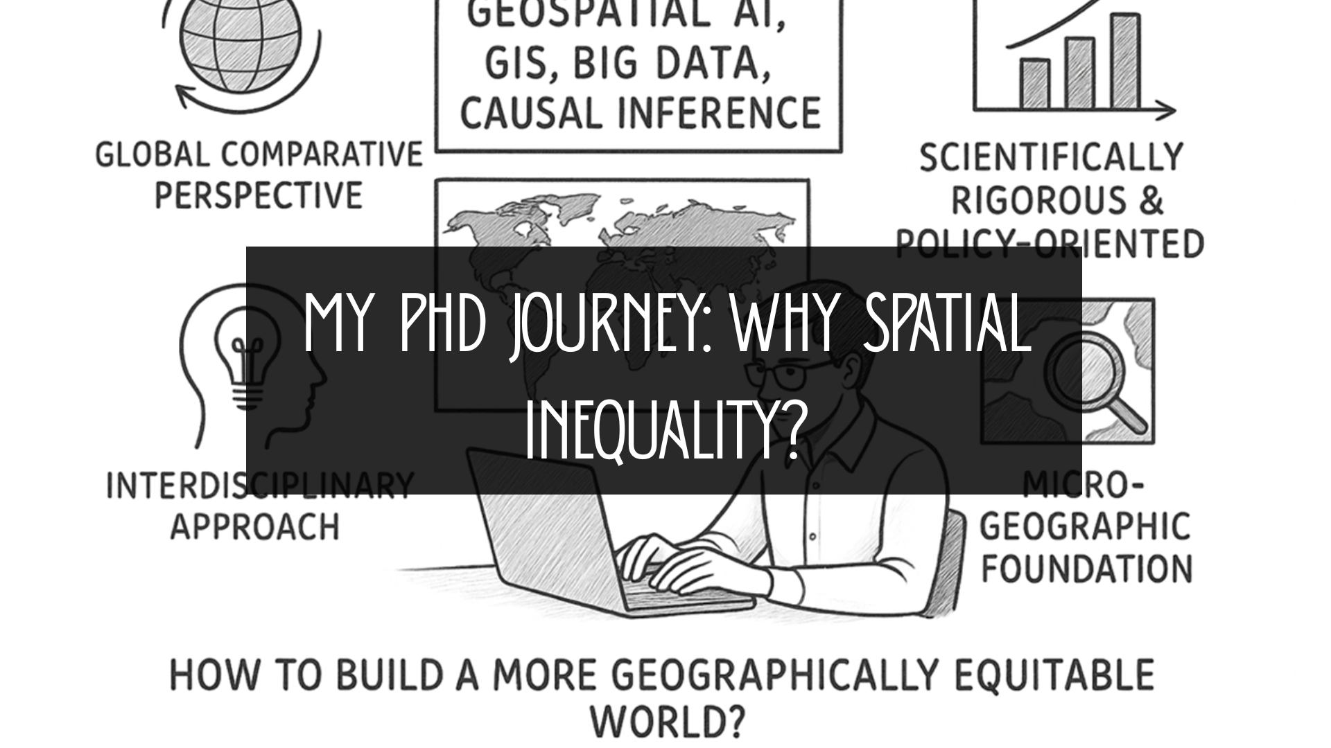 My PhD research focuses on “spatial inequality,” yet I cannot clearly recall when this concept first took root in my mind. In retrospect, however, I suspect that my earliest understanding of it stems from my own upbringing. I was raised by my elderly, amiable, and illiterate grandparents in a small rural village in southeastern China, where I attended local primary and junior high schools before being selected to a prestigious senior high school in the city. The stark rural–urban divide in educational resources, economic facilities, and infrastructure had very early made me feel that there must be something we can do to build a more geographically equitable world, one in which individuals, regardless of their origins, have more equal access to opportunities and can share in the benefits of socioeconomic prosperity.