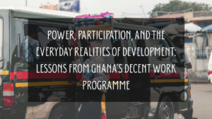 Read the full paper here: Arko, B. (2019). Understanding power asymmetry in participatory development spaces: Insights from Ghana’s Decent Work Programme. Regional Studies, Regional Science, 6(1), 399–404.