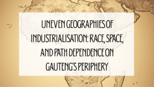 South Africa’s post-apartheid development landscape remains profoundly shaped by its inherited spatial and institutional architecture. Derived from my PhD study, Bell (2025) argues that underdevelopment conditions, stemming from apartheid’s racial capitalist project, created spatial and institutional constraints in Gauteng’s periphery. These conditions limited equitable urban and industrial transformation, and persist today (Ashman, 2022; 2023).