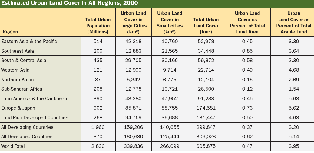 It begins by charting the methodology used to study global urban expansion followed by a perspective on patterns in global density. The report then moves on to issues of city fragmentation and projections on how cities might grow by 2050. The research notes that currently built-up area densities in developing countries are double those seen in Europe and Japan and those densities are double those seen in the United States, Canada, and Australia.